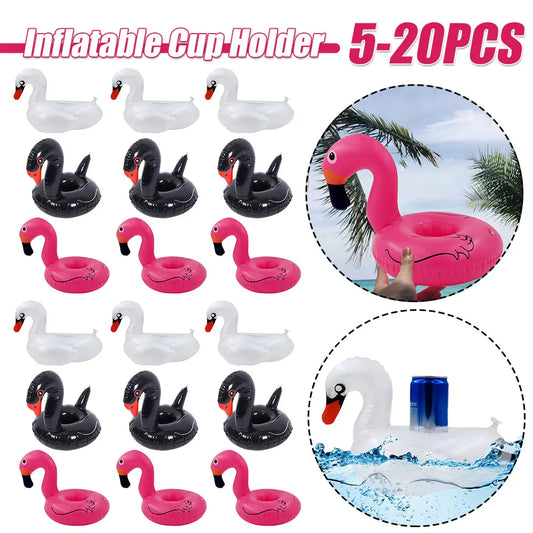 5-20PCS Cartoon Swan Shaped Inflatable PVC Cup Holder for Drinks (Pool Party Floating Cushion).